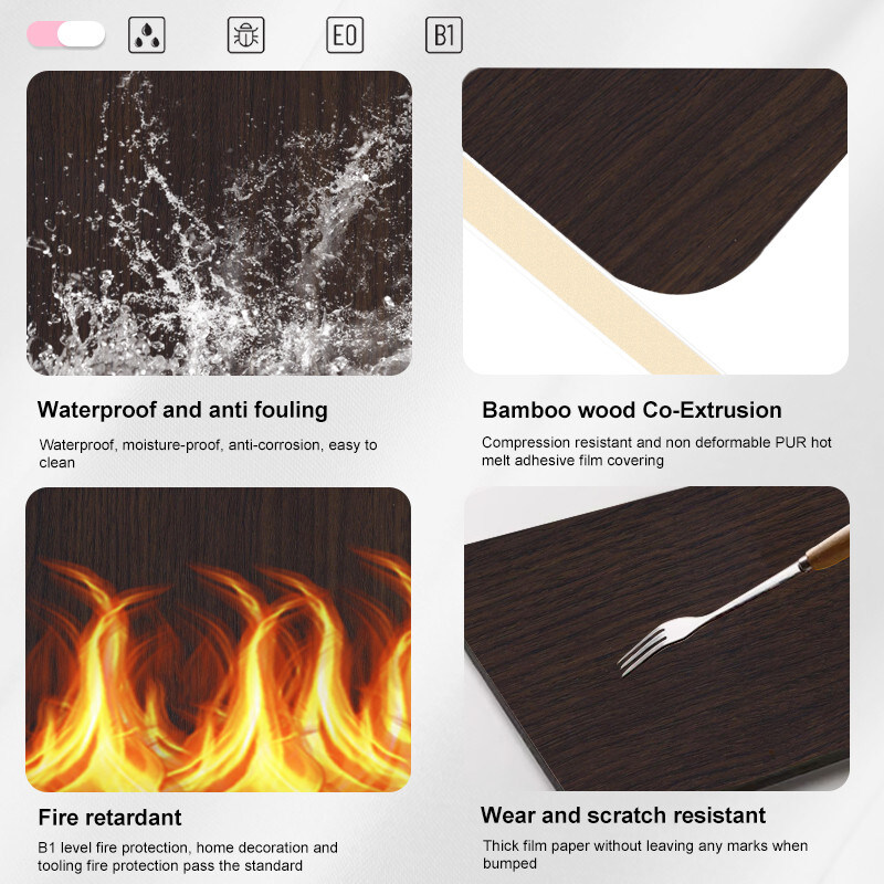 Procurez-vous dès aujourd'hui votre panneau mural écologique en bambou, avec du placage de bois de charbon de bambou imperméable, parfait pour le revêtement mural décoratif intérieur. Le panneau est fabriqué à partir de charbon de bambou, de fibre de bois de bambou, de PVC et de PET et est collé avec de la colle PUR.