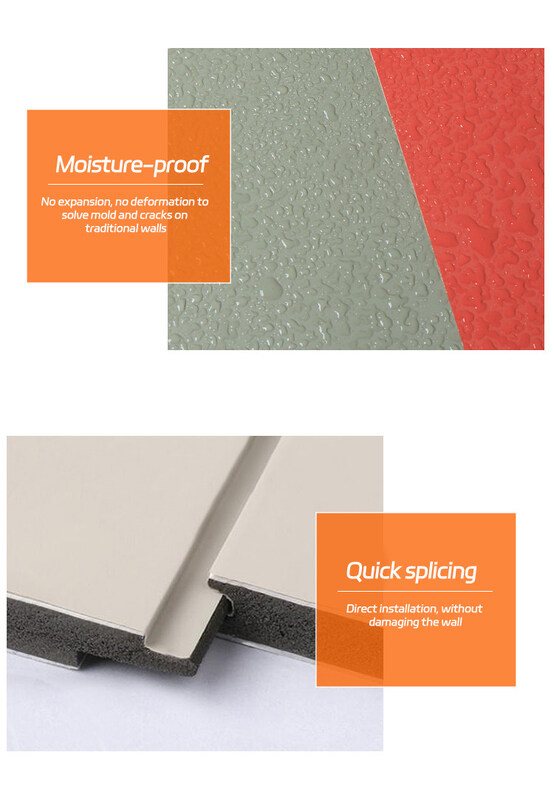 Installation facile, protection de l'environnement, flexible, pliable, haute densité, pliable. Ignifuge + étanche + résistant à l'humidité + anti-rayures + absorption acoustique, anti-moisissure. Léger. Textures claires, variété de couleurs, etc.